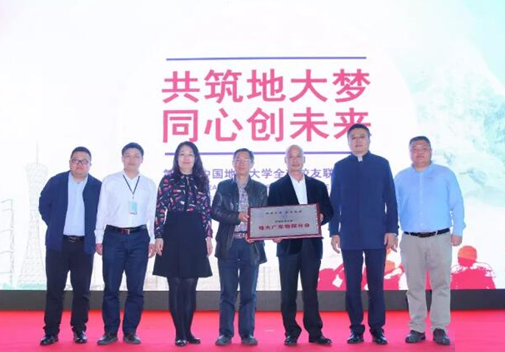 在全球校友联谊大会上,地空学院院长胡祥云、院党委副书记李周波、校友合作处处长徐岩、物探校友代表上台参加地大广东物探分会成立仪式,胡祥云院长为广东物探校友分会授牌。