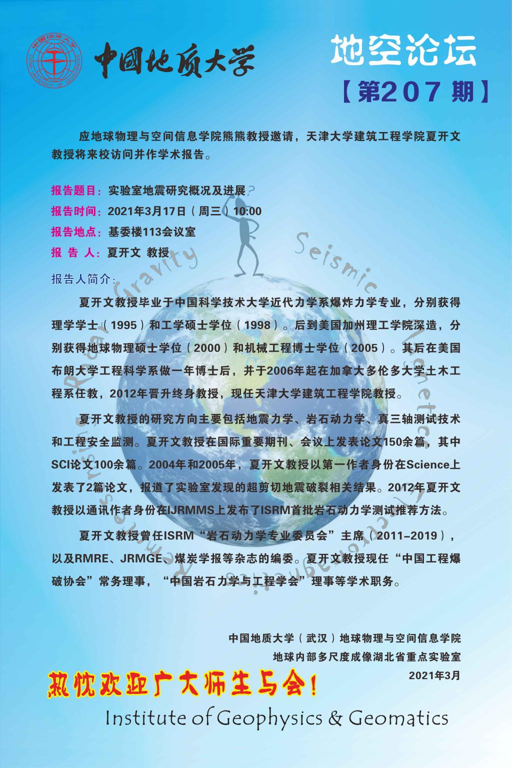 地空论坛【第207期】夏开文 教授