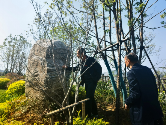 在日出东方广场,一行人员见到了毛泽东主席的雕像,这是为纪念1958年毛泽东主席视察大冶铁矿而建的,大冶铁矿为毛主席唯一视察过的铁矿山,也是在这里,毛主席题词“开发矿业”。